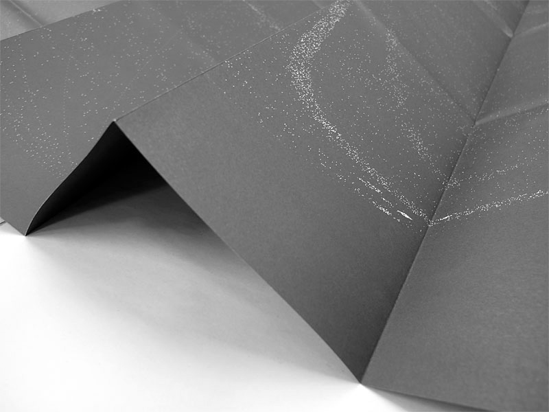 map sheet 990x660mm folded to 124x220mm, uncoated paper, offset printed in black, sleeve 228x155mm with black foil debossed title, colophon slip insert